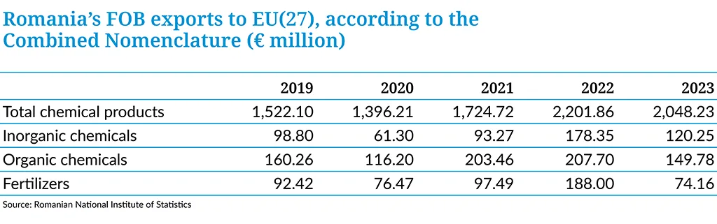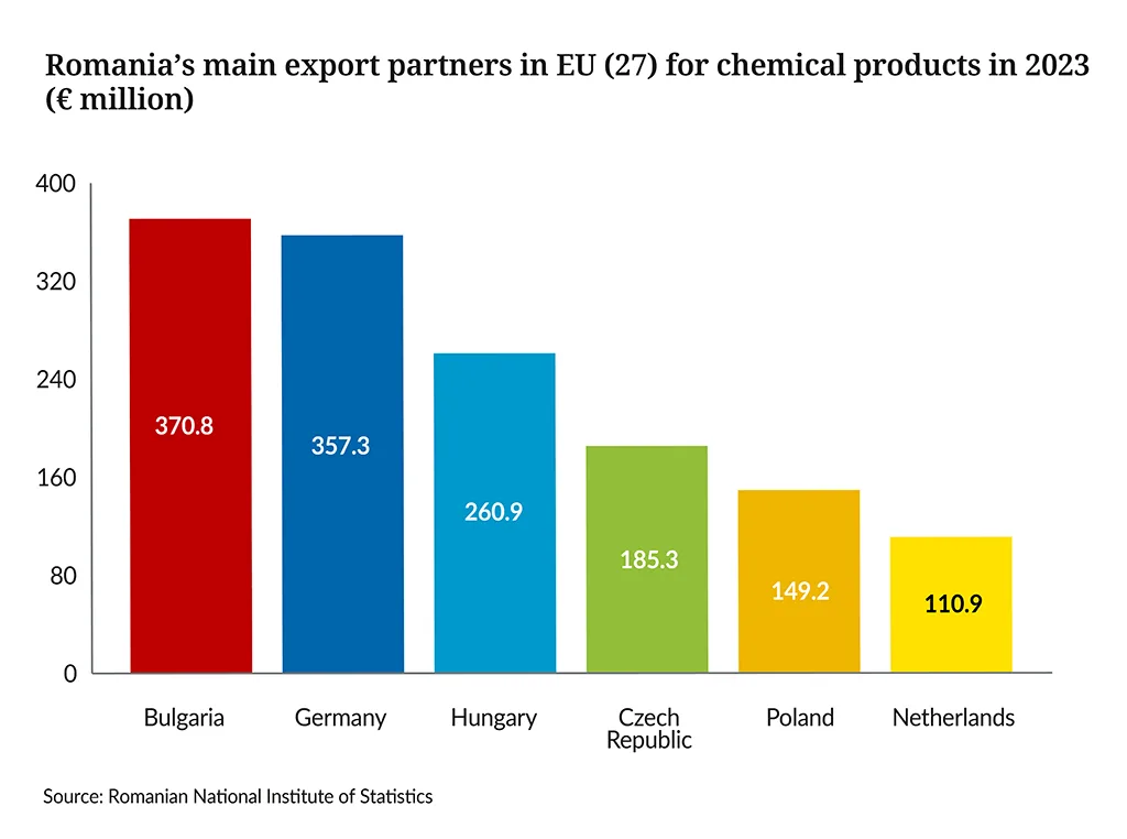Romania’s main export partners in EU (27) for chemical products in 2023 (euro million)
