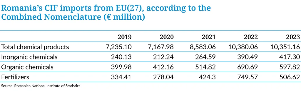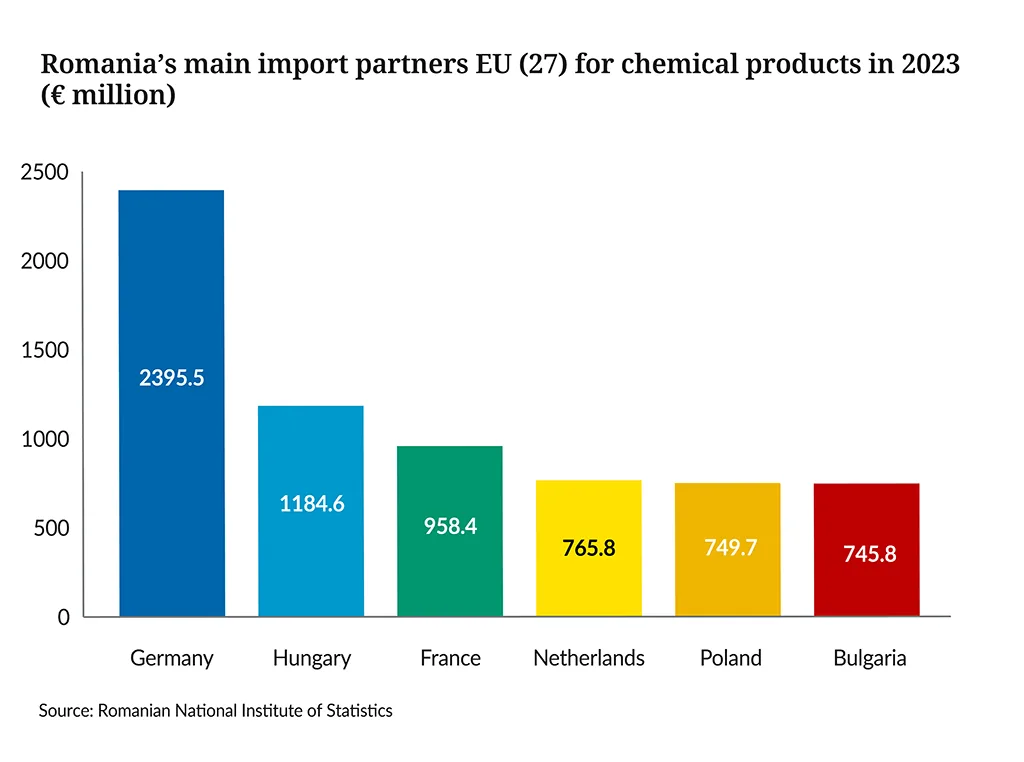 Romania’s main import partners EU (27) for chemical products in 2023 (euro million)